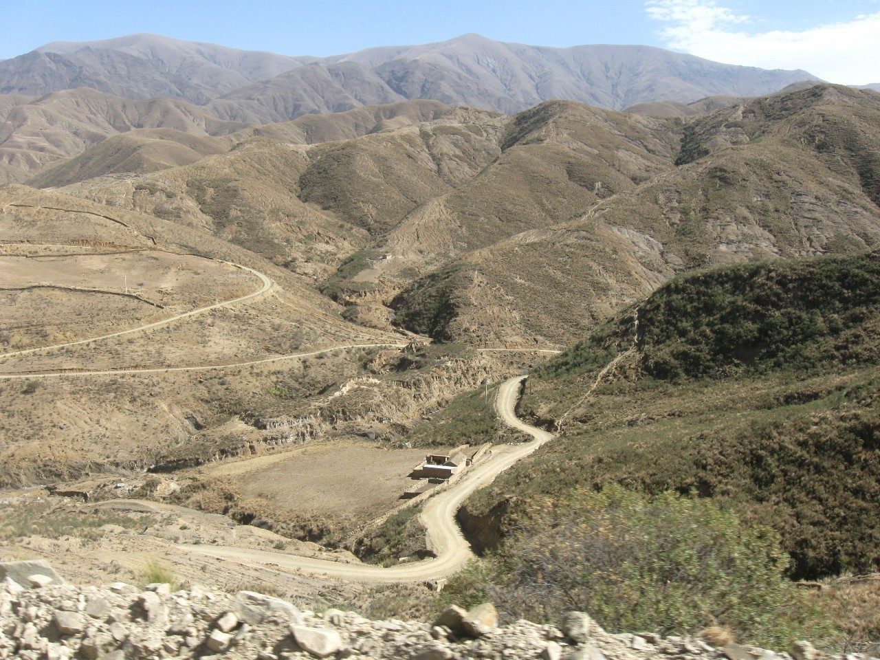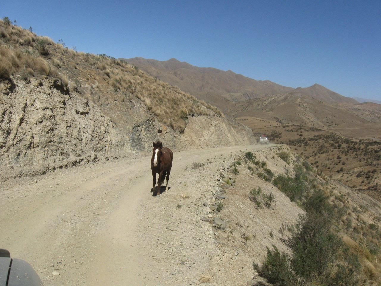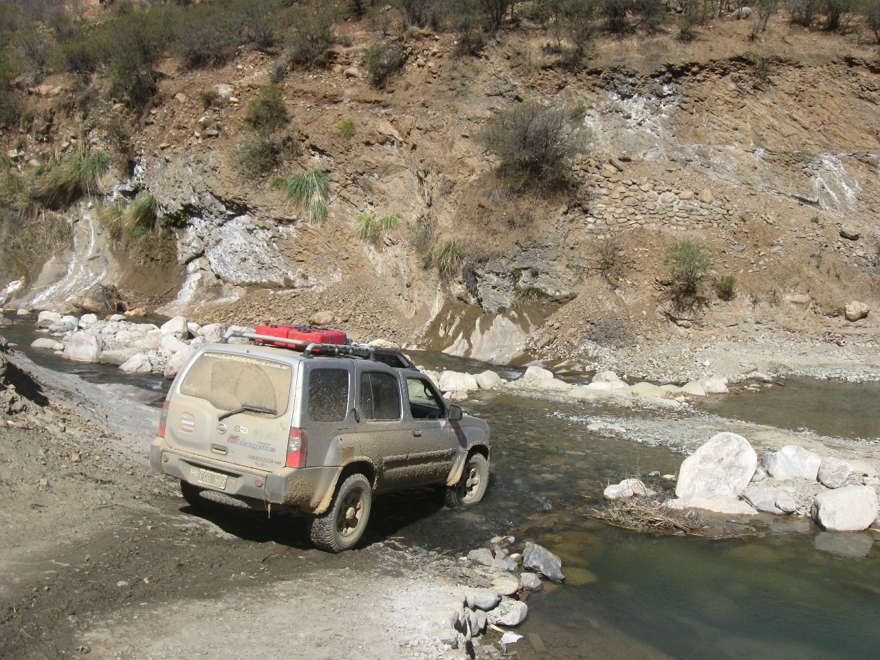 El paisaje es sumamente arido y pedregoso con imponentes pendientes,en gral no hay puentes y cada ves que hay un río el camino baja hasta el y sube nuevamente a través de temibles caracoles capaces de marear al cualquiera y porque no descomponer a un par de chicas como Luciana y Bety. En buena parte del camino, lideraba Fede y su traquila navegante Carmen que a través de sus graciosos diminutivos reducía el riesgo de cada “accidente carretero”, convirtiendo así los posos en “positos”, las cortadas en cortaditas y los animales en “animalitos”, pero a través del conversor/traductor que cada uno “swichea” para cada radio-navegante la información termina siendo muy clara.